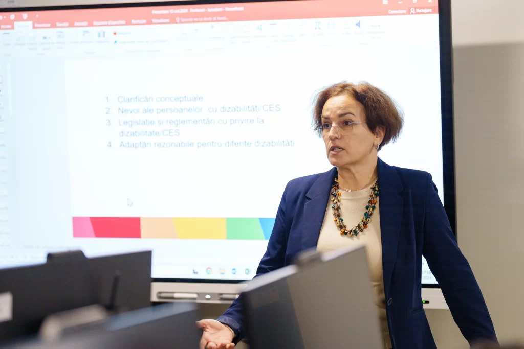 Ca parte a demersurilor de a crea un mediu academic incluziv, Universitatea din București a organizat, în cadrul proiectului „Ecosistem digital pentru învățare sustenabilă la Universitatea din București – EDIS-UB”, o sesiune de formare cu privire la abordările educaționale în activitățile academice pentru studenții cu dizabilități și cerințe educaționale speciale (CES).